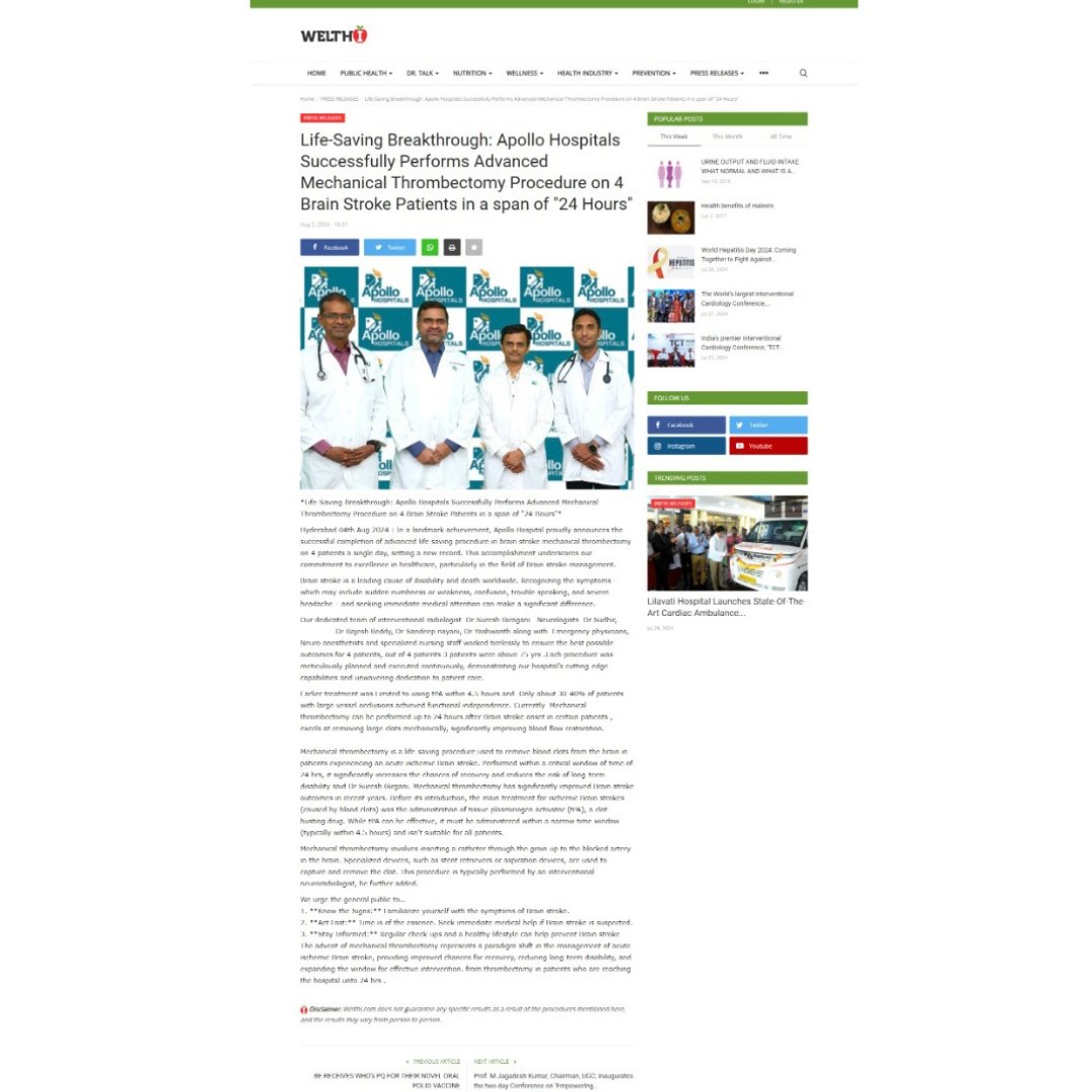 DR.SURESH GIRAGANI CONSULTANT INTERVENTIONAL RADIOLOGIST at Apollo Hospital, has more than Seventeen years of clinical experience in vascular interventions with a special interest in neurovascular and peripheral vascular disease interventional procedures.